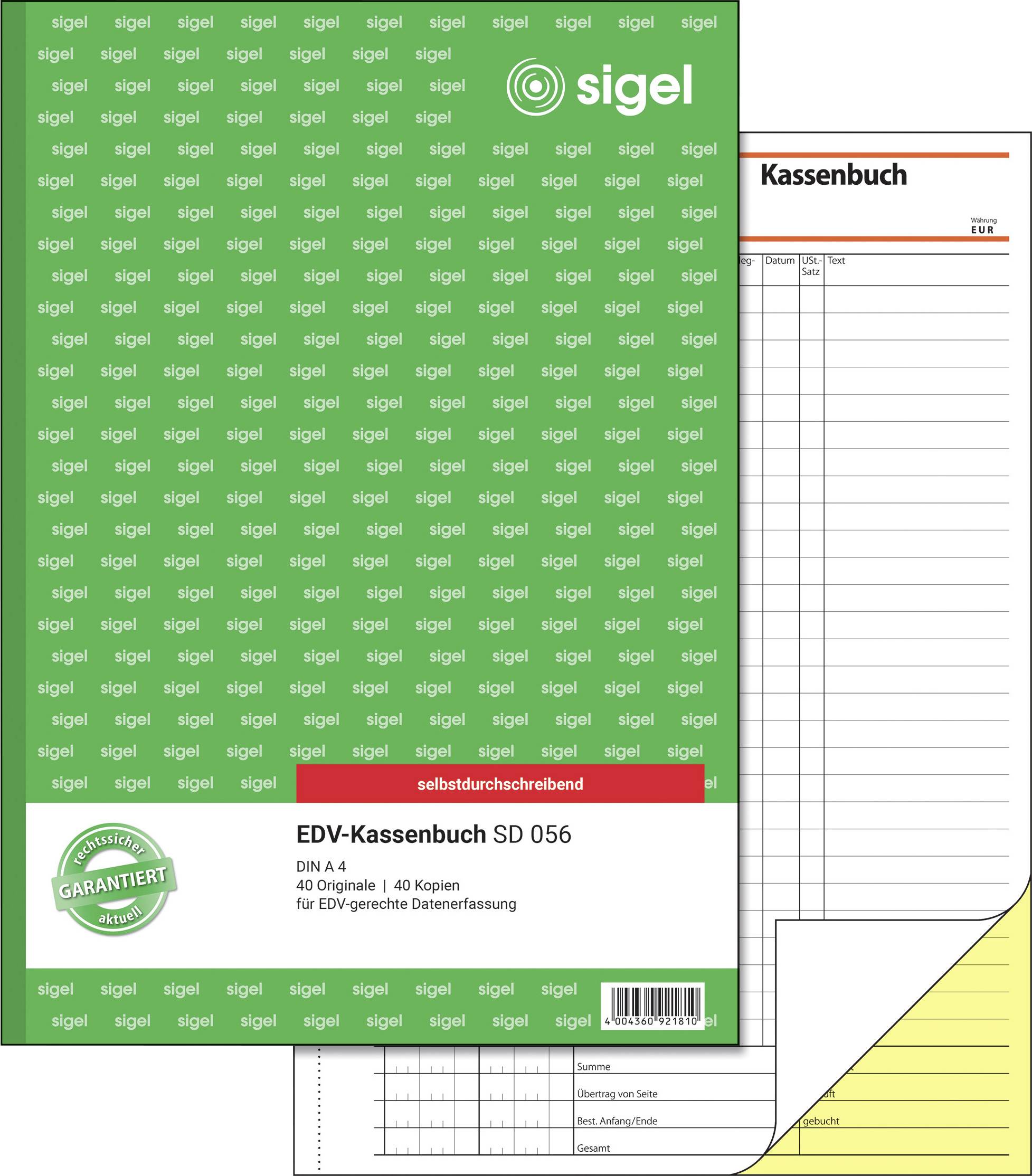Sigel Kassenbuch Sd056 Din A4 Anzahl Der Blatter 40